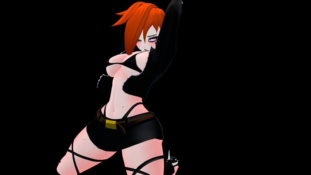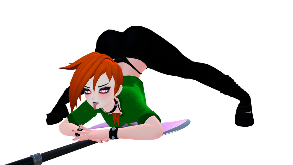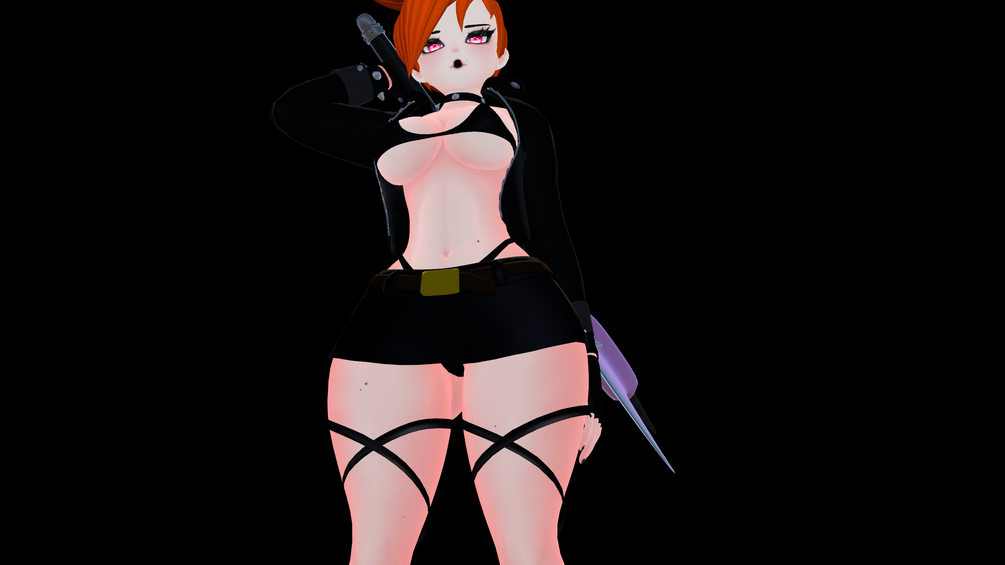 - Green T-shirt, Leggings, Boots, Cuffs, Collar, Leather Jacket, Skirt, Gloves, Spikes Heels, Legs Straps, Ankle Straps, Bra, Panty, Battle Axe, Bigger Booba, Color Lipstick, Shinny skin, SPS, TVF-Penetrator